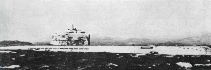 Редкий снимок лодки XXI серии на поверхности, хотя и без особых деталей, сделанный у берегов Норвегии, где базировались все достигшие боеспособного состояния лодки XXI серии. Теперь эти подводные лодки были предназначены для действий полностью под водой, и практика нанесения эмблем была прекращена.