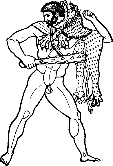 Юный Геракл надел шкуру убитого льва на себя, накинув ее, как плащ, на свои могучие плечи. Лапы он связал у себя на груди, а шкура с головы льва служила ему шлемом. Геракл сделал себе огромную палицу из вырванного им с корнями в Немейской роще твердого, как железо, ясеня. Меч Гераклу подарил Гермес, лук и стрелы — Аполлон, золотой панцирь сделал ему Гефест, а Афина сама соткала для него одежду.
