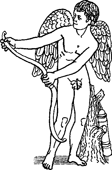 Бог любви изображался юношей или мальчиком с золотыми крылышкам, с луком, стрелами, колчаном, иногда — с факелом.