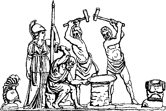 В этом же дворце находилась и кузница Гефеста. Большую часть времени Гефест проводил в своей полной чудес кузнице.