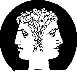 Янус изображался человеком с двумя лицами — одно считалось обращенным в прошлое, другое — в будущее. Атрибуты Януса — ключи и посох.