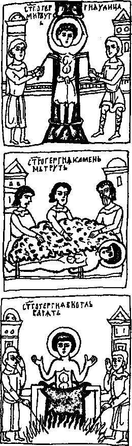 Тогда велел император связать Георгия и бросить в глубокий ров за городом. А наполнили тот ров негашеной известью, сжигающей до костей всякую живую плоть. На третий день Диоклетиан послал слуг выбросить кости Георгия, чтобы не осталось ни памяти, ни могилы его.