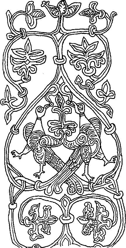 Изображение птицы, доставшей со дна моря комочек, из которого была сотворена земля. Белокаменный резной узор. Юрьев-Польский, Георгиевский собор, 1236 г.
