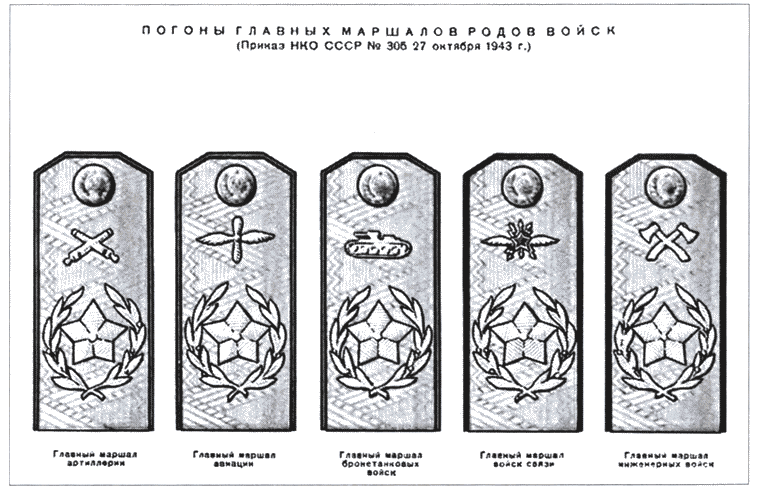 Погоны Главных маршалов родов войск, установленные Приказом НКО СССР № 305 от 27 октября 1943 г.