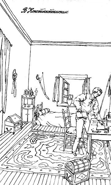Кроме того, в прогулках по огромному городу, таившему для него загадки, подобно нескончаемым сказкам тысячи и одной ночи, он с увлечением изучал памятники старины, искал следы древней Византии. Начинал овладевать турецким языком.