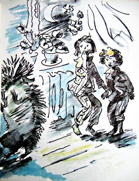 Девочки уже попривыкли к Ежу и почти его не боялись. Он стоял по-человечески на двух задних ногах, а передние прижимал к груди, и пальцы на них были когтистые и темные. Ничего страшного, если не пугаться.