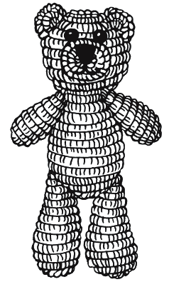 10-й ряд – 12 столбиков без накида, 6 раз провязать по 2 столбика без накида в каждую 2-ю петлю основания, 12 столбиков без накида; середину ряда пометить нитью контрастного цвета для определения мест глаз и рта;