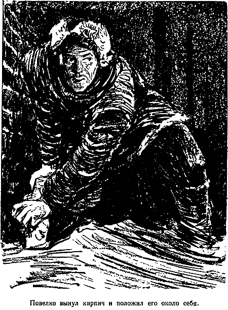 Вложив кирпич обратно в стену и замаскировав это место снегом, Повелко пошел обратно. Он торопился. Сердце билось гулко, радостно, в ушах стоял звон…