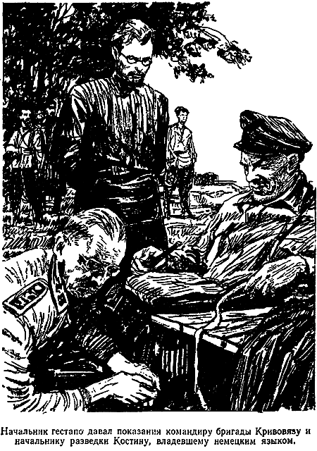 Утро следующего дня застало Гунке в партизанском лагере. Начальник гестапо давал показания командиру бригады Кривовязу и начальнику разведки Костину, владевшему немецким языком.
