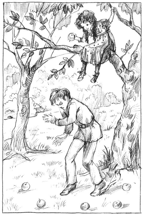 Но последний слог не успел вылететь из горла гимназиста: большое, красное яблоко с силой ударило его по лбу.