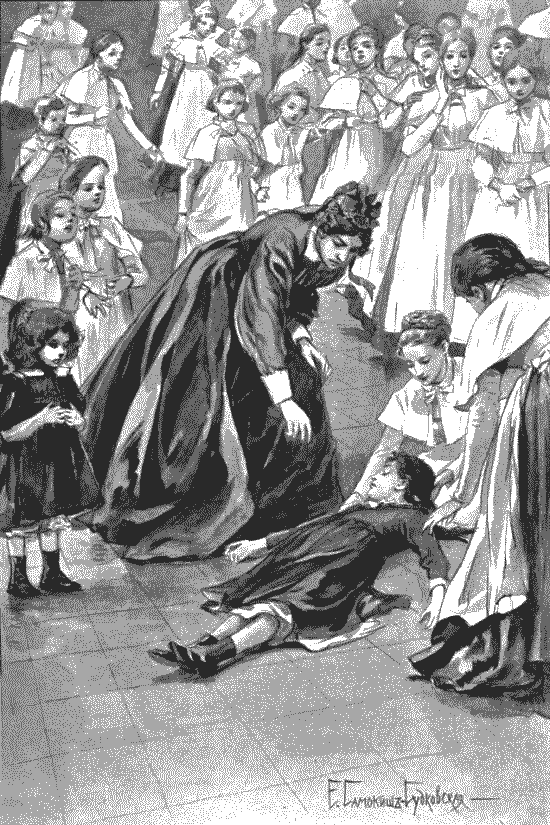 Бледную, с бессильно опущенными руками и повисшей головой Катю положили на ближайшую скамейку. Несмотря на то, что возможная помощь была тотчас же ей оказана, девочка не приходила в себя, и ее в сопровождении подоспевшей мадам Фрон отнесли в лазарет и уложили в постель.