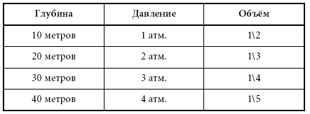 Таблица давления и объема