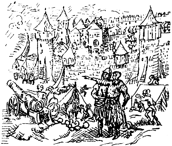 Там, за земляным валом и деревянными палисадами, стояли пушки, у которых дежурили немцы. Волы, перетаскивавшие эти тяжелые бронзовые орудия на низких тележках с маленькими колесами, паслись на приречных лугах под присмотром скотников и погонщиков. Ярма и дышла выстроились возле изб в ограде крепостцы. Когда немецкий капитан получал приказ о передвижении, глашатай трубил с вершины холма в горн, и погонщики гнали сивых волов к дороге, которая так и называлась — Пушечная.