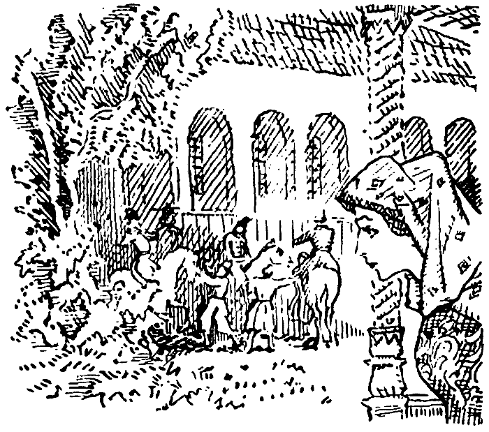 — Скажите немедля людям, — велел он служителям, — что нам грозит опасность. Пусть держат оружие наготове. А мы укроемся в устье оврага. Ты, Коман, скачи в ближайшее село за подмогой.