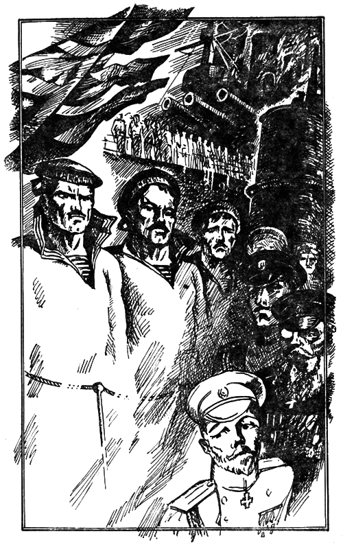 Мы опять выстраиваемся на верхней палубе. А дальше — обычное: царю нужно обойти фронт, еще раз заглянуть в лица людей, может быть, спросить кой-кого, если что придет в голову. Так любит делать все высшее начальство. Я мельком наблюдаю за радиотелеграфистом Зобовым. Большой, он напряженно смотрит на царя сверху вниз, смотрит, как судья на преступника. Встречаются их взгляды. Это какая-то безмолвная схватка глазами. Кажется, что сейчас произойдет что-то страшное — я услышу жуткий диалог. Один спросит: