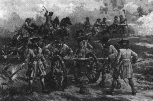 Простояв напротив московских укреплений минут двадцать при сравнительно ясной погоде, Карл дал приказ сигнальщикам открывать огонь. Трубы и литавры возвестили о начале битвы… Ухнули пушки левой и правой группы. В ответ облачками порохового дыма окутались московские укрепления. До двух часов дня продолжалась яростная