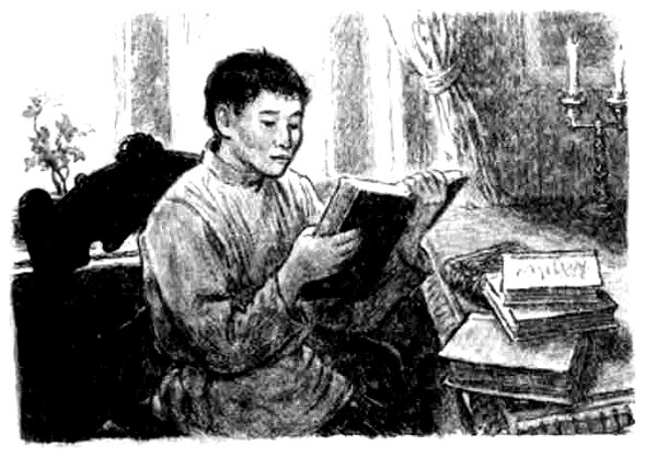 С этой минуты у него нашлись новые собеседники — книги. Он читал запоем. Один купец был куда богаче книгами, чем все Вилюйское высшее начальное училище. Перед глазами Уосука проплывали города и страны, народы и века. Вместе с Карамзиным, автором «Записок русского путешественника», он побывал в Западной Европе, историк Ключевский познакомил его с жизнью Древней Руси. Он плакал над трагедиями Шекспира и хохотал взахлеб, читая «Сорочинскую ярмарку»… Особенно запомнился ему роман Мамина-Сибиряка «Приваловские миллионы». Он понял, как сколачивали свои состояния люди, подобные его приемному отцу…