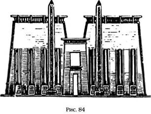 В Египте у входа в Солнечные Храмы устанавливались два обелиска (рис. 84), которые предназначались для того, чтобы направлять солнечный луч в предписанный день. Э. А. Уоллис Бадж («The Egyptian Obelisk») отмечал, что фараоны, например, Рамзес II и царица Хатшепсут, всегда воздвигали такие обелиски парами. Царица Хатшепсут даже приказала вырезать свое имя (внутри орнамента) между двумя обелисками (рис. 85а), чтобы благословенный луч Ра падал на нее в этот важный день.