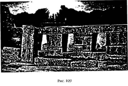 Храм Трех Окон, как назвал его Бингхем, имеет только три стены: одна с окнами, выходящими на восток, и две боковые, служащие защитными крыльями. Западная сторона полностью открыта, а на месте стены здесь стоит каменная колонна примерно семи футов высотой, которую с двух сторон поддерживают два горизонтальных тщательно обработанных каменных блока; колонна расположена точно напротив центрального окна. Паз на верхушке колонны заставил Бингхема предположить, что там могла крепиться балка, поддерживающая тростниковую крышу, однако такие крыши не были характерны для Мачу-Пикчу. По нашему мнению, колонна выполняла ту же функцию, что пяточный камень (на первом этапе) или алтарный камень (позднее) Стоунхенджа и седьмая колонна Гудеа – то есть указывала направление для наблюдений. Искусное расположение трех окон обеспечивало три направления наблюдений – за восходом солнца в день летнего солнцестояния, равноденствия и зимнего солнцестояния (рис. 110).