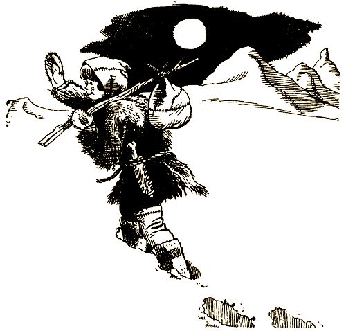 Ты собираешь пожитки. Одной вещицей ты особенно дорожишь — это нож, сделанный из бивня мамонта. Ты прощаешься с друзьями и бредешь по снегу, стараясь найти свои следы, ведущие в Пещеру Времени. Хотя ветер холоднее, чем обычно, яркое солнце поддерживает в тебе надежду.