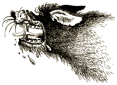 Затем он прыгает. Ты наносишь удар ножом, встав при этом так, чтобы волк не мог вцепиться в тебя своими страшными клыками. Нож только рассекает воздух, но и волку удается только сорвать медвежью шкуру, в которую ты завернут. На мгновение он застывает над шкурой, обнюхивая ее. Ты поворачиваешься и вонзаешь нож ему в загривок. Волк странно скрючивается, смотрит на тебя с ненавистью и падает замертво.