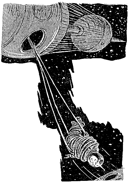 Он поворачивает голову и видит устремлённые на него глаза. Много глаз, похожих на те, которые он впервые увидел на экране телеустановки. Но теперь Икар уже не чувствует страха - можно рассмотреть обитателей и хозяев этого удивительного корабля.