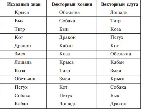 Векторов вокруг Бориса Ельцина (Коза): Александр Коржаков, Александр Лебедь, Виктор Черномырдин, Сергей Кириенко (все — Тигры), Евгений Примаков (Змея). Теперь в такой же ситуации президент Украины Виктор Ющенко (Лошадь). В его ближайшем окружении то Юлия Тимошенко, то Юрий Ехануров, теперь еще министр иностранных дел Борис Тарасюк (все — Крысы).