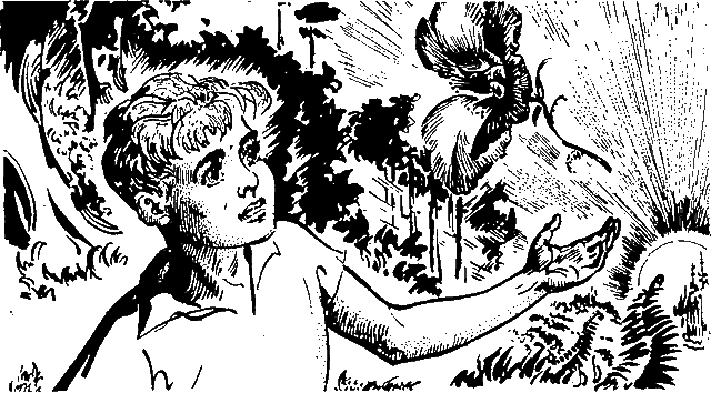Цветок снова промолчал. Впрочем, нет… Что-то слышится Славе. В глубине тёмного зрачка блестят золотистые искры, будто разгорается багряное пламя, колышутся тени. Нет, это не тени, это кони, а на них всадники. Развеваются флаги на копьях, слышатся ржание, крики. А потом песня… Рокочут-плачут струны бандуры, стонут высокие волны на море, на чайках несут рыцарей храбрых в край, далёкий, на смерть, на подвиг, на бессмертие. Искристо вспыхивает пламя, летят в голубом небе невиданные корабли. Не самолёты, не дирижабли, не ракеты, к которым привык глаз мальчика! Нет! Ясеневые корабли с гордо поднятыми резными носами, с узорчатыми парусами, что надувают на солнце цветистую грудь свою. И сидят на этих кораблях сказочные победители — народные герои. Нет для них ничего непреодолимого; ни драконы, ни змеи, ни коварство царей и вельмож — ничто не остановит подвига, на который благословила мать родная, земля любимая, сказка волшебная…
