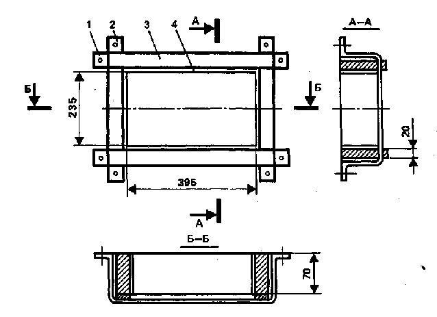 Рис. 3. Форма: 1, 2 — металлические полосы; 3 — стенка; 4 — металлическая окантовка