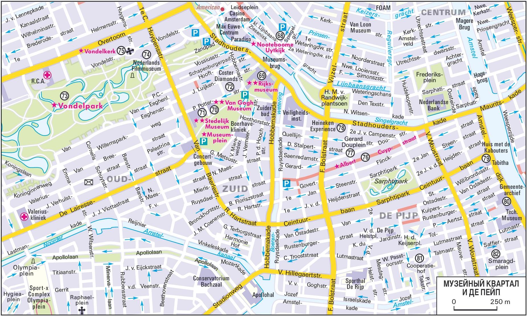 Название *Стеделейк CS (Stedelijk CS) (86)указывает на новый, временный адрес музея Стеделейк (до 2008 г.). Здесь нужно побывать хотя бы один раз, не только из-за бесценной художественной коллекции, но и из-за захватывающей дух *перспективы, открывающейся с одиннадцатого этажа из ресторана Club II на залив Эй, на остров и на весь город. Специально проложенная пешеходная дорожка ведет от вокзала вдоль набережной Остердокскаде (Oosterdokskade) к музею, размещенному в настоящее время на 3 и 4 этажах здания в стиле модерн, бывшего почтового управления.