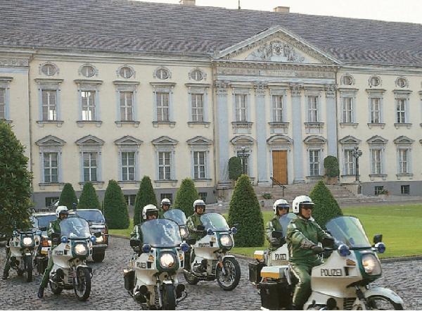 Бывший дворец принца на Шпреевег (Spreeweg) с 1959 года служил берлинской резиденцией федерального президента. А бывший президент ФРГ Рихард фон Вейцзекер в 1994 году, недолго думая, превратил ее из берлинской резиденции в правительственную. О присутствии президента во *дворце Бельвю (Schloss Bellevue) (38) возвещают флаги на крыше. Рядом с 1998 года блистает овальное черное здание канцелярии федерального президента (Bundespr"asidialamt).