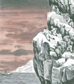 Что он углядел в густом снегопаде? С расстояния двух миль вход в Пеуровуоно обычно выглядит в виде ущелья, причем западный берег отличается темным цветом и крутизной. Но с катера вообще ничего не было видно.