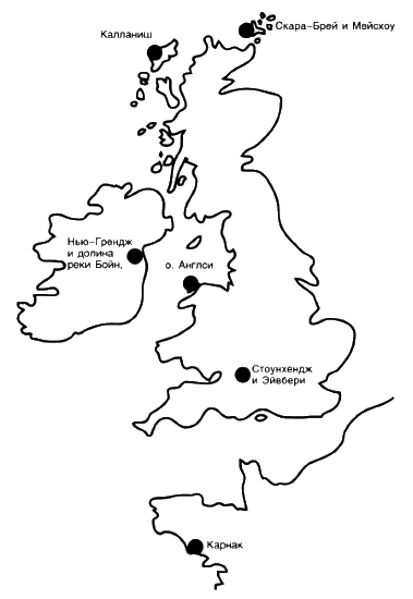 Как уже отмечалось в предыдущей главе, обитавший в этой области народ получил название народа культуры рифленой керамики по характерному рисунку на своих гончарных изделиях. Британские острова, особенно западная часть, буквально усеяны доисторическими сооружениями: стоячие камни и насыпи среди полей или их остатки под асфальтовым покрытием городских улиц; к тому же чуть ли не все старые церкви занимают места, считавшиеся священными за тысячи лет до рождения Христа.