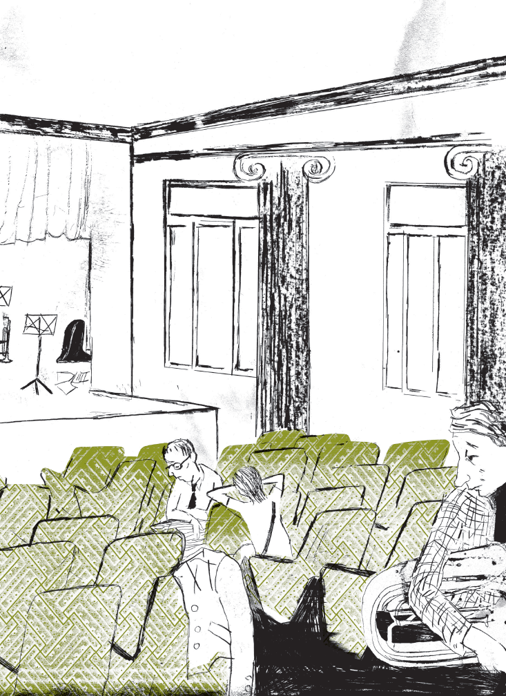 Он схватил меня за руку. (К этому времени я уже плакал. Ну и что? Что с того?) Протащил меня через вестибюль. Вломился в актовый зал. Крикнул Духовому квинтету Средней школы имени Вашингтона Ирвинга, что им придется порепетировать где-нибудь в другом месте, а сейчас ну-ка идите отсюда! – что они тут же и сделали. А он толкнул меня на один из стульев. Сел рядом. И велел: «Рассказывай».