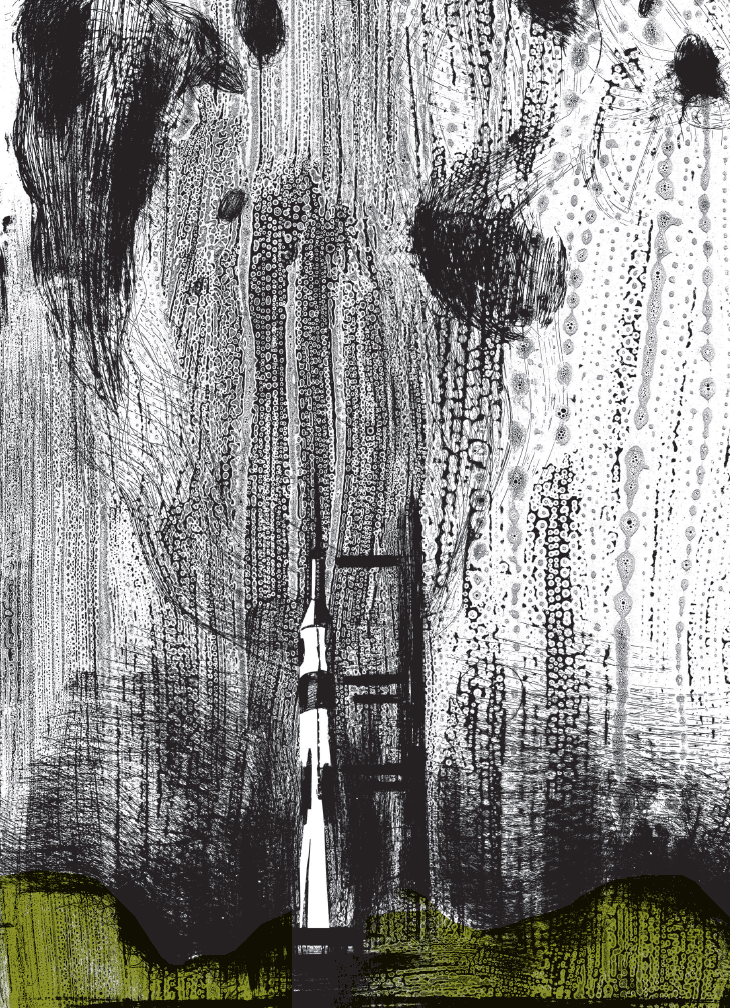 Мы смотрели на мерцающий огонек под ракетой «Сатурн» – между прочим, я мог бы рассказать вам про термодинамику ее топлива, – и на то, как эта ракета поднимается все дальше и дальше в небо, направляясь к Луне.