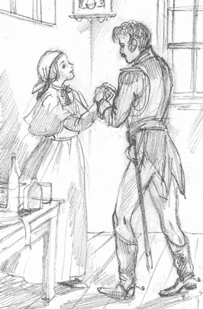 Девушка проводит рукой по глазам. Но видение не исчезает: рядом с ней высокая, стройная, хорошо знакомая фигура; на нее удивленно смотрят радостные, ласковые глаза…