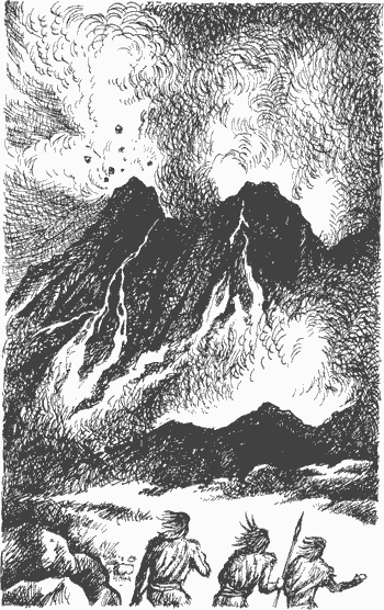 Далеко за горизонтом скрывались скалистые горы. Все ниже и ровнее становилось травянистое плоскогорье. Только небольшие холмики, заросшие редкими рощами и кустарником, поднимались над глубокими оврагами. Здесь они встретили деревья с красными ягодами. Сначала они боялись есть эти незнакомые ягоды, но, увидев, что птицы с удовольствием лакомятся ими, попробовали их и сами. Кисло-сладкие, сочные, ягоды хорошо освежали в жару и придавали нежный вкус мясу, если их жарили вместе с ним. Ягод было очень много, но охотники не стали собирать и сушить их, так как не хотели терять времени и перегружать себя лишним грузом в далеком пути.