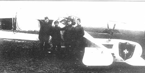 Третий командир 7-го аои штаб-ротмистр Тадеуш Гроховальский (второй справа) у своего «Ньюпора»-23