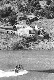 Вертолёты для охраны лесов от пожаров в США впервые начали применять в 1946 г. Опыты по перевозке на небольшом вертолёте людей и лёгкого пожарного снаряжения к месту лесного пожара в Калифорнии показали большие потенциальные возможности этого типа летательного аппарата. В ходе исследовательской операции «Fairstop» для транспортировки воды в прорезиненных мешках ёмкостью 150–250 литров, закреплённых под фюзеляжем, был использован лёгкий вертолёт Bell 47. Позже резиновые мешки были заменены двумя боковыми баками, соединёнными трубой со сливными клапанами.