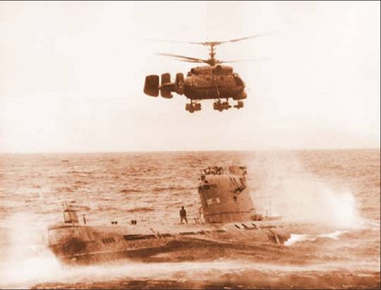 Что делал наш вертолет в походе? Чаще всего выполнял связные функции, например, приводил вспомогательный корабль с продуктами, оборудованием и почтой. Отрабатывал противолодочную охрану плавбазы, особенно когда к ее борту была пришвартована атомная субмарина. Как правило, она подходила к плавбазе, в основном, в районе экватора после 50-60-суточной вахты и становилась на профилактику и замену экипажа. Надо сказать, что как только была пересечена граница СССР, над плавбазой появился самолет НАТО. Особенно зорко американцы «караулили» плавбазу в момент отхода от нее подводной лодки.