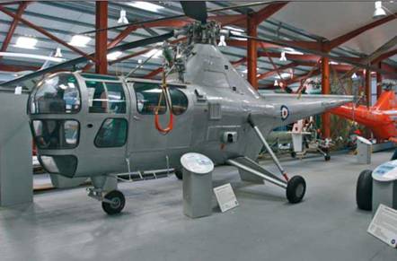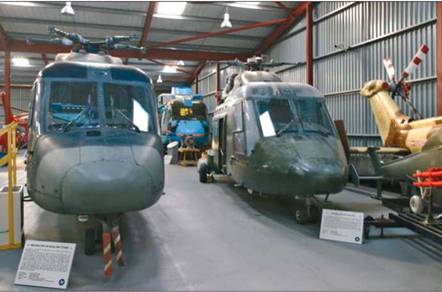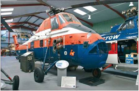 Интерес посетителей музея неизменно вызывает и многоцелевой вертолет EH-101, оснащенный тремя 1920-сильными ГТД фирмы General Electric CT97-6A. Он был построен на фирме Westland в 1988 году и широко использовался при проведении сертификационных испытаний, а также для разработки противовибрационной системы, систем автоматического управления. Вертолет EH-101 в музей был доставлен также не по воздуху, а по земле. Он известен еще и как самый большой вертолет, который транспортировали по английским дорогам.