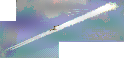 Активная фаза учений с каждой минутой набирает обороты. Вот уже с «Приволжского» в небо поднялись командированные на время учений из Буденновска 12 штурмовиков Су-25СМ, под крылом которых — по 4–6 неуправляемых ракет С-24Б или четыре бомбы ФАБ-500ШЛ, а с аэродрома «Мариновка» — четыре фронтовых бомбардировщика Су-24М с четырьмя осколочно-фугасными бомбами ОФАБ-250-270 каждый. Нетрудно подсчитать, какая общая масса боеприпасов должна вскоре обрушиться на землю, отсекая отходящие войска от наседающего противника. А тем временем к воздушному пространству над полем боя приближалась тройка дальних бомбардировщиков Ту-22МЗ. Взлетев с авиабазы под Саратовом, они преодолели чуть менее полутысячи километров, неся «неприятный подарок» противнику в виде 24 бомб ФАБ-1500.