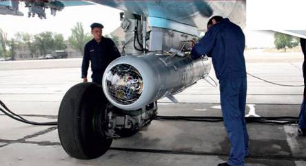 Техники снаряжают Су-27СМ неуправляемыми ракетами С-25