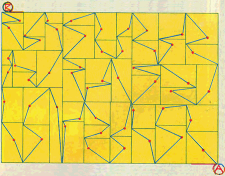 Сереже очень понравился алгоритм рекурсивного крокета, и он его в своем кружке запрограммировал для настоящего компьютера. Посмотрите, как нарисовал компьютер крокетный маршрут через пятьдесят ворот. А какую программу напишете вы?