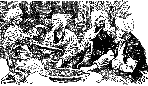 – Если бы аллах дал нашим слабым ногам силу и резвость обойти все четыре стороны света, нигде бы наши глаза не порадовал вид столь вкусных, превосходно приготовленных блюд…