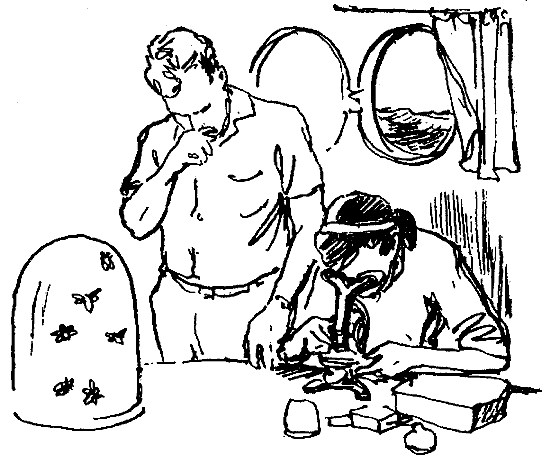 — Одна из проблем, которыми занимается наша лаборатория, — это поиски способов ныряния человека на большие глубины, — рассказывал он размеренным, глуховатым голосом, рассеянно выстукивая пальцами в то же время какую-то сложную мелодию по столешнице.