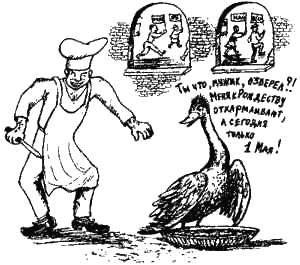 Запомнился мне гусь и в один из решающих моментов моей жизни, а именно когда я ожидала рождения второго сына. Не знаю, что на меня нашло, но мне так захотелось гуся, что я себя не помнила. Райская птица снилась мне по ночам, днем я стенала и канючила, умоляя приготовить гуся, так что мать наконец не выдержала.