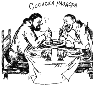 Другой с помощью вилки подцеплял одну-две ниточки спагетти, ухватывал их зубами и потом с сопением, бульканьем и чавканьем долго-долго втягивал в рот длиннющую змею, которая моталась по тарелке, подбородку и рубашке едока.