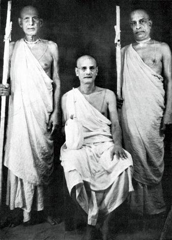 Слева направо: Муни Махараджа, Бхактипрагьяна Кешава Махараджа, А.Ч. Бхактиведанта Свами Махараджа