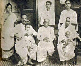 Сидят, слева направо: Абхай и его сын Праяг Радж, его отец Гоур Мохан, его старшая сестра Раджешвари со своей дочерью, Сулакшманой. Стоят: жена Абхая Радхарани, его племянник Туласи, его брат Кришна Чаран.